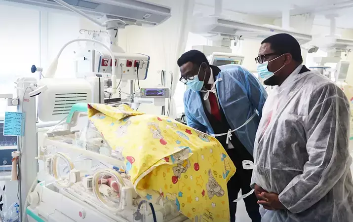 Директор РНПЦ «Мать и дитя» Сергей Васильев показал гостям высокотехнологичное отделение интенсивной терапии, где выхаживают недоношенных новорожденных и младенцев с тяжелыми патологиями. Применяемые в отделении технологии и возможности неонатальной хирургии вызвали особый интерес у парламентариев Зимбабве. К слову, среди пациентов была девочка из Африки, которая при рождении весила всего 600 г. Сейчас ей полтора месяца, благодаря усилиям белорусских врачей она набирает вес.