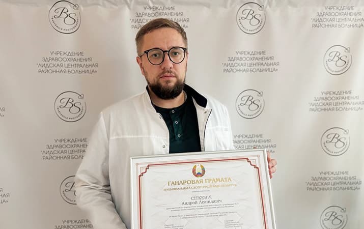 За без малого 10 лет молодой врач, заведующий отделением анестезиологии и реанимации № 2 Лидской ЦРБ Андрей Ситкевич был удостоен значимых наград, в том числе Почетной грамоты Национального собрания Республики Беларусь за большой вклад в реализацию социальной политики страны и добросовестный труд в сфере здравоохранения, архиерейской грамоты Лидской епархии Белорусской православной церкви.